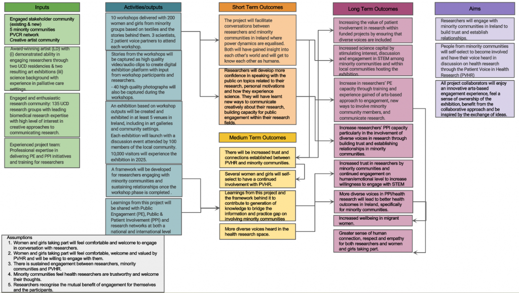 Cut from the same Cloth is a project run by the Conway institute at University College Dublin. The project aims to connect minoritised communities with biomedical researchers and get more diverse voices involved in their Patient Voice initiative. Graphic Science was appointed as evaluator. Utilising a mixed methodology approach we designed surveys and in-person evaluation approaches for involved researchers and minoritised communities. The in-person evaluation consisted of five opinion statements, completed with stickers and translated into different languages to accommodate the fact that many participants spoke English as an additional language. The workshops bringing together researchers and participants successfully built trust and encouraged more women from minoritised communities to get involved with Patient Voice.